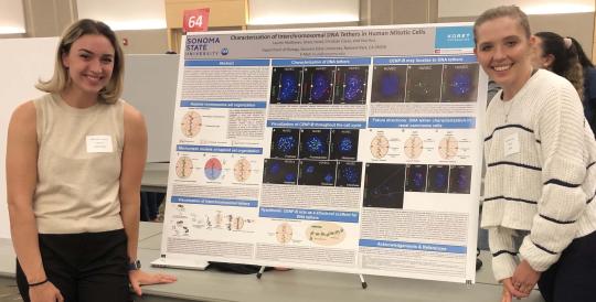 November 2019: Congratulations to Lab Members Angelica Aguilar and Shayla Shahar who recently received the Koret Award, part of the SSU 2019-2020 Student Research Awards! Angelica's project is “The Fidelity of Chromosome Organization in Aging” and Shayla's project is "Chromosome Organization in Renal Carcinoma". Way to go, Angelica and Shayla!